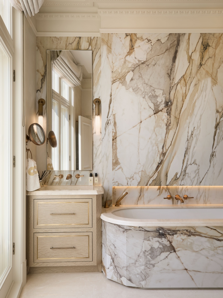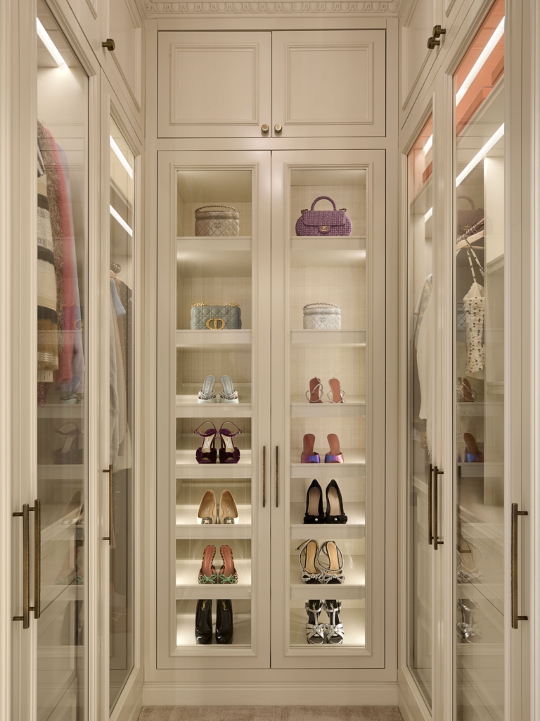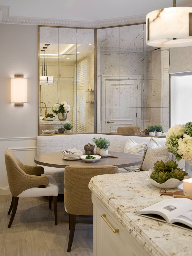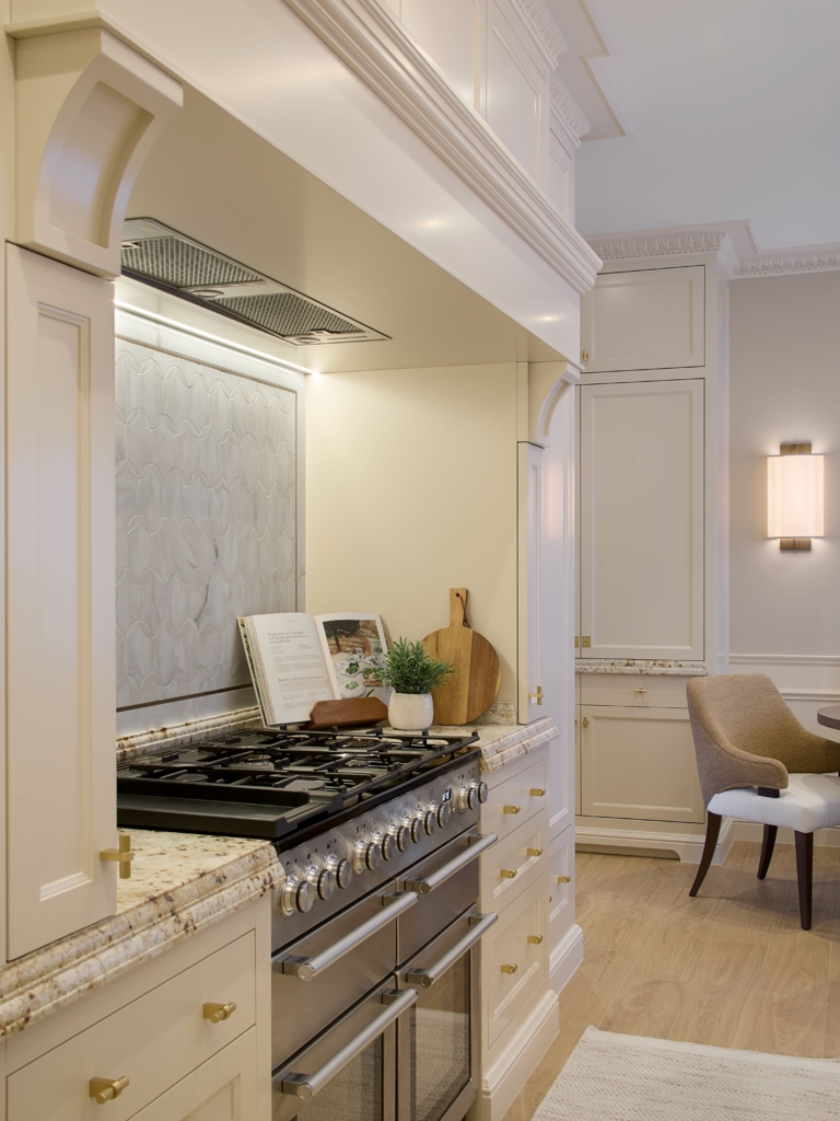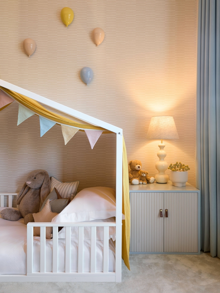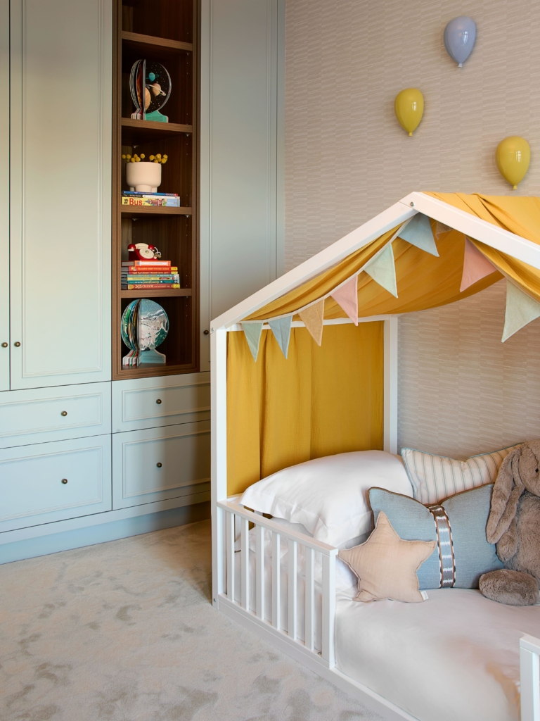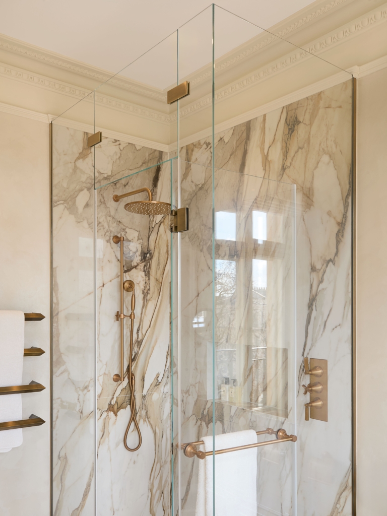Located in the heart of Marylebone, this classical apartment was a very special restoration project to work on. Built in 1904 and set within a landmarked mansion building, it showcases elegant Edwardian features, characterised by their elegance and detail. These included beautiful bay windows, original French doors, ornate decorative floor tiles, intricate stained glass windows, timber panelling and large rooms with high ceilings. It was a joy to design to such striking proportions and craft a scheme which enhanced and honoured it’s charming features. While the meticulous restoration of its original features was a very important part of the client brief, the clients also wanted a sense of clean modernity woven throughout the home. We introduced this style particularly in the less formal areas- such as the media room and children’s bedrooms- with the use of lighter finishes, modern fabric prints and contemporary silhouettes seamlessly layered onto the classical architectural base. The result is the harmonious marriage of old and new to create an elegant, considered and welcoming family home.